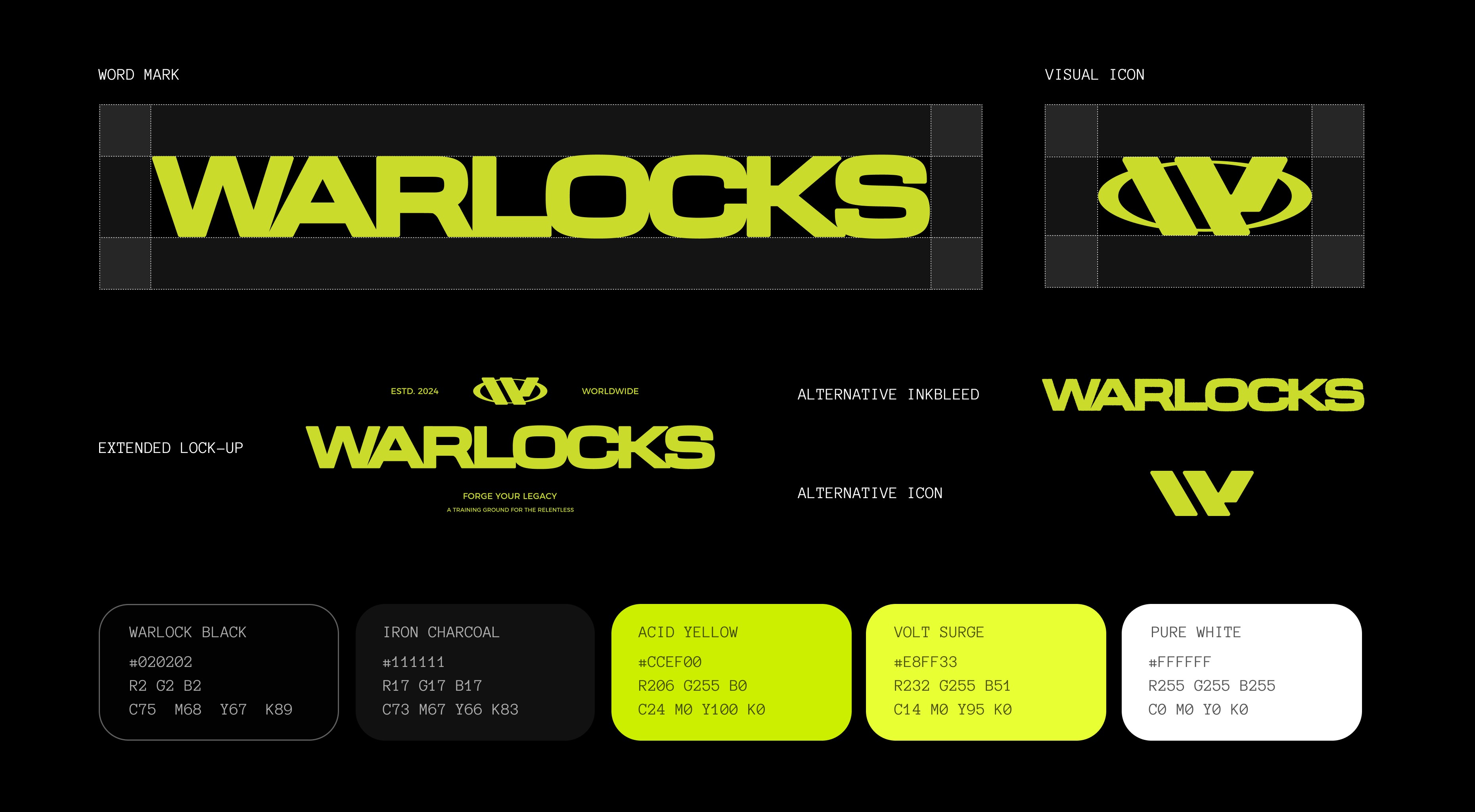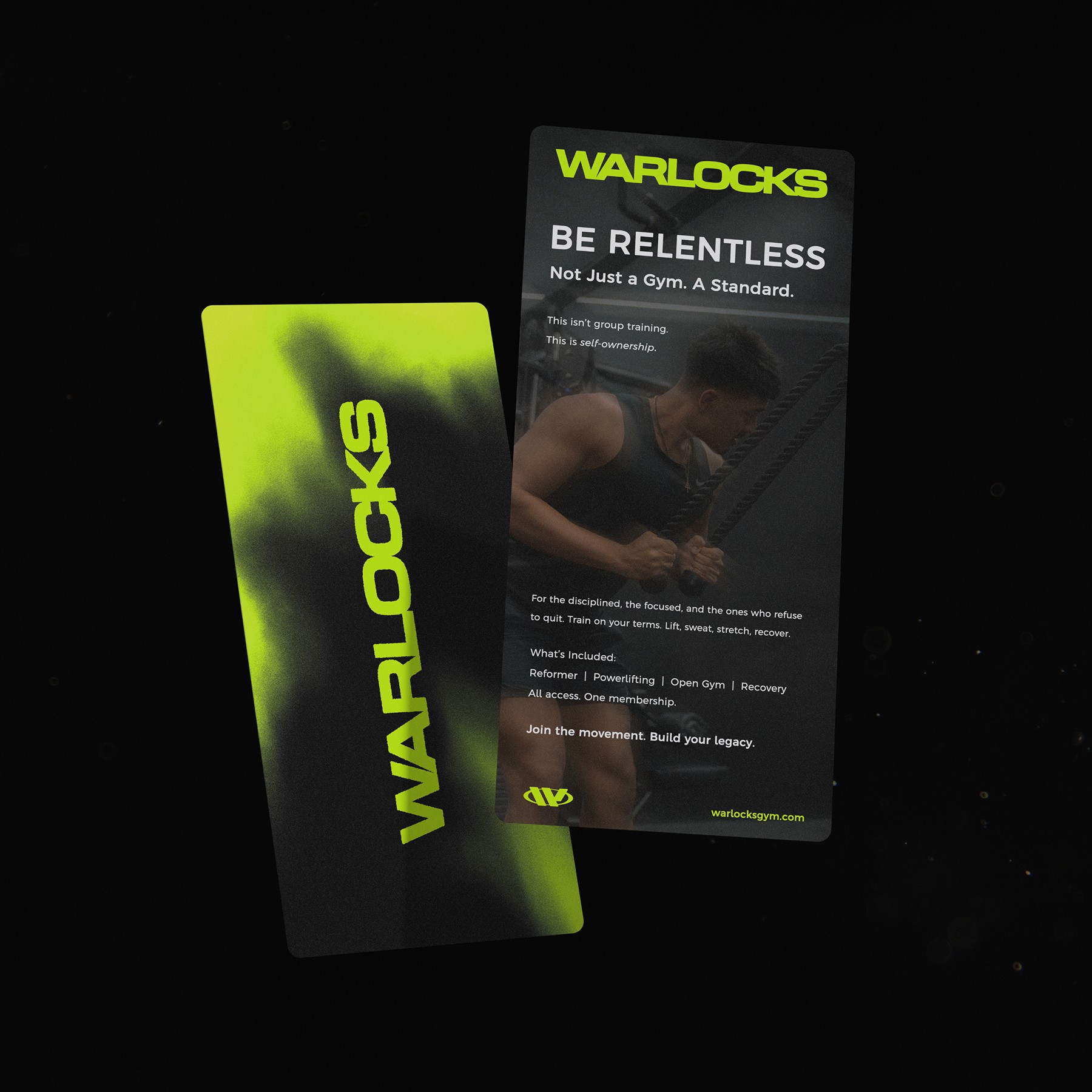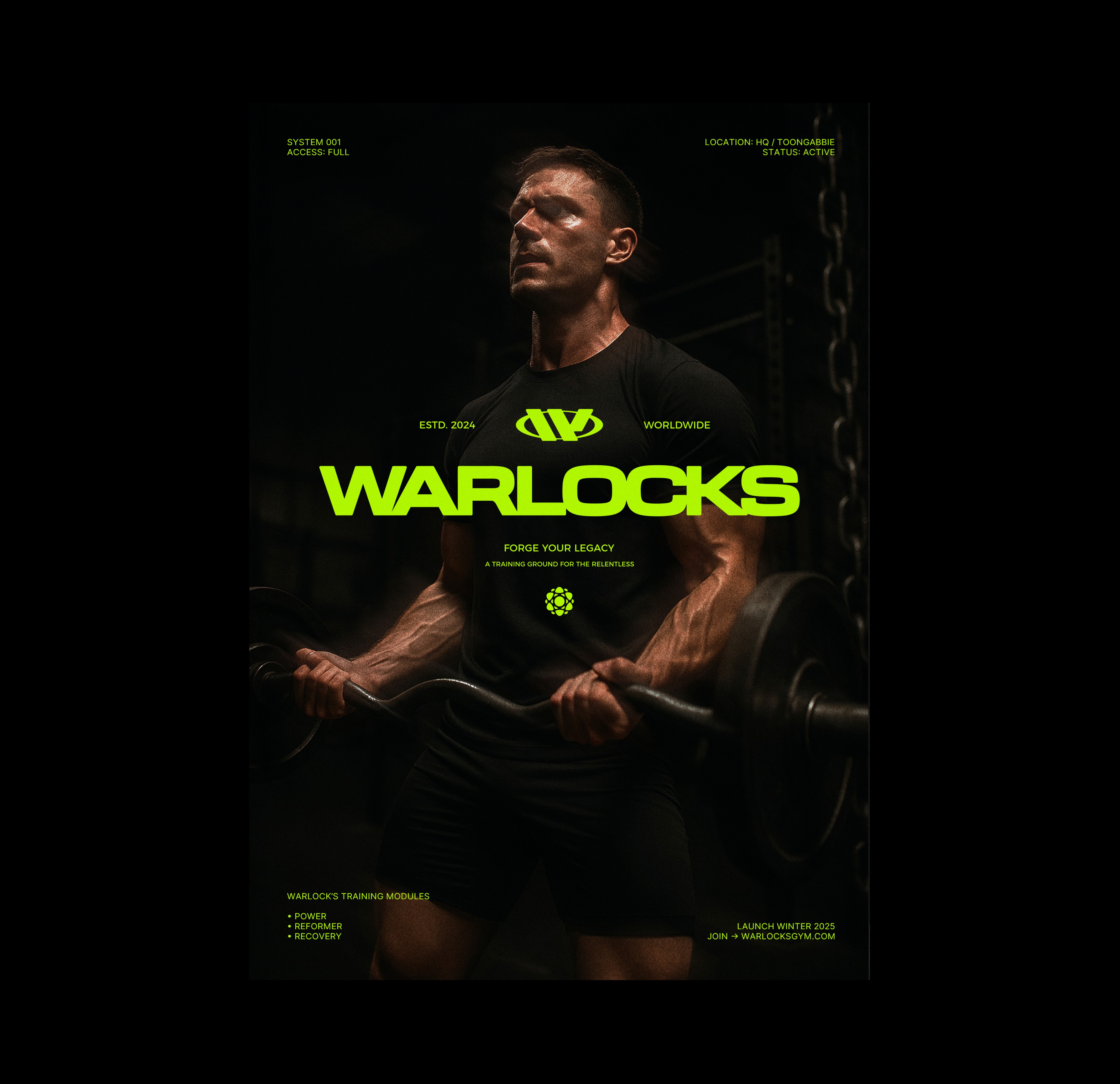 Warlock’s Gym was built to break away from the generic fitness experience, positioning itself as a premium, all-in-one training ground for strength, recovery, and performance. From powerlifting racks to reformer pilates and open recovery spaces, the brand needed to embody aggression, precision, and modern luxury. My role was to craft a complete brand identity system that could live across apparel, interiors, digital platforms, and large-scale environmental graphics.